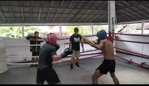 Atlet tinju buleleng melaksanakan latihan sparing drill di sasana pertina buleleng ....