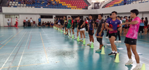 Atlet Kabaddi Buleleng mengikuti kegiatan tes fisik dalam rangka persiapan porprov bali 2025, dalam kegiatan ini sudah diikuti oleh seluruh atlet peng....