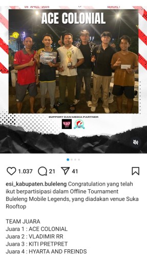 Alet Binaan ESI Buleleng divisi MLBB meraih Juara 1 tingkat umum dalam tournament MLBB di Suka Rooftop Seririt ....