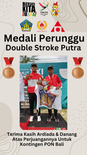 berhasil meraih Medali Perunggu Double Stroke Putra, Atlet An. Komang Ardiada Gunatama & Da....