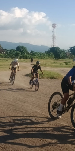 Atlet-atlet balap sepeda mengikuti latihan bertanding di sirkuit maha surya penimbangan. Latihan dipandu oleh pelatih Bayu Tristiyanto, Dede Mas dan A....