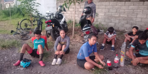Atlet balap sepeda mengikuti latihan endurance dengan gayung berputar sepanjang sirkuit Maha Surya di Pantai Penimbangan. Jumlah putaran disesuaikan d....